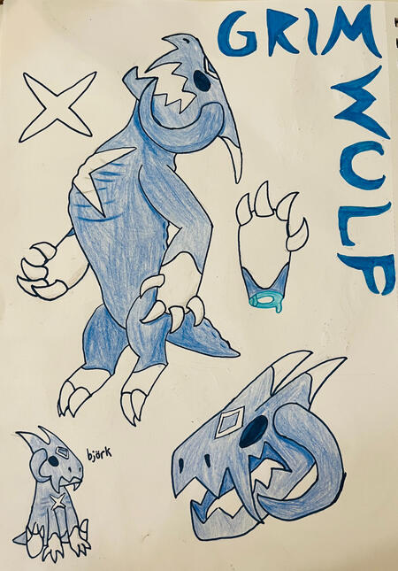 GrimmwulfA big, blue brute that acts less scary than it looks. Rook's husk that he gained when he was young, Grim remains his loyal companion. It's just a big dog with an appetite for everything, including humans.